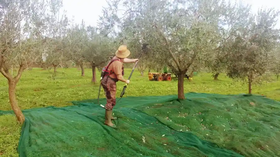 Potom ide utovar opreme na traktor: tresači, mreže, kašete, voda… sve treba biti pri ruci, kako berba ne bi zaostajala ni malo. Cilj je pravodobno pobrati sav plod, kako bi kvaliteta ulja bila što viša, a i kako bi se optimizirala radna snaga uključena u berbu.