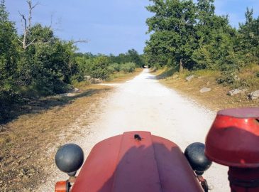 U masliniku Proganj smo se odlučili ove godine za rahljenje površinskog sloja zemlje umjesto košnje. Naravno, posljedično nestaje trava. Najprije smo koristili linije, a potom i zubatku. Nakon ovog postupka, riješili smo većinu trave. Ostaju uski pojasevi trave među stablima, a to rješavamo trimerom.